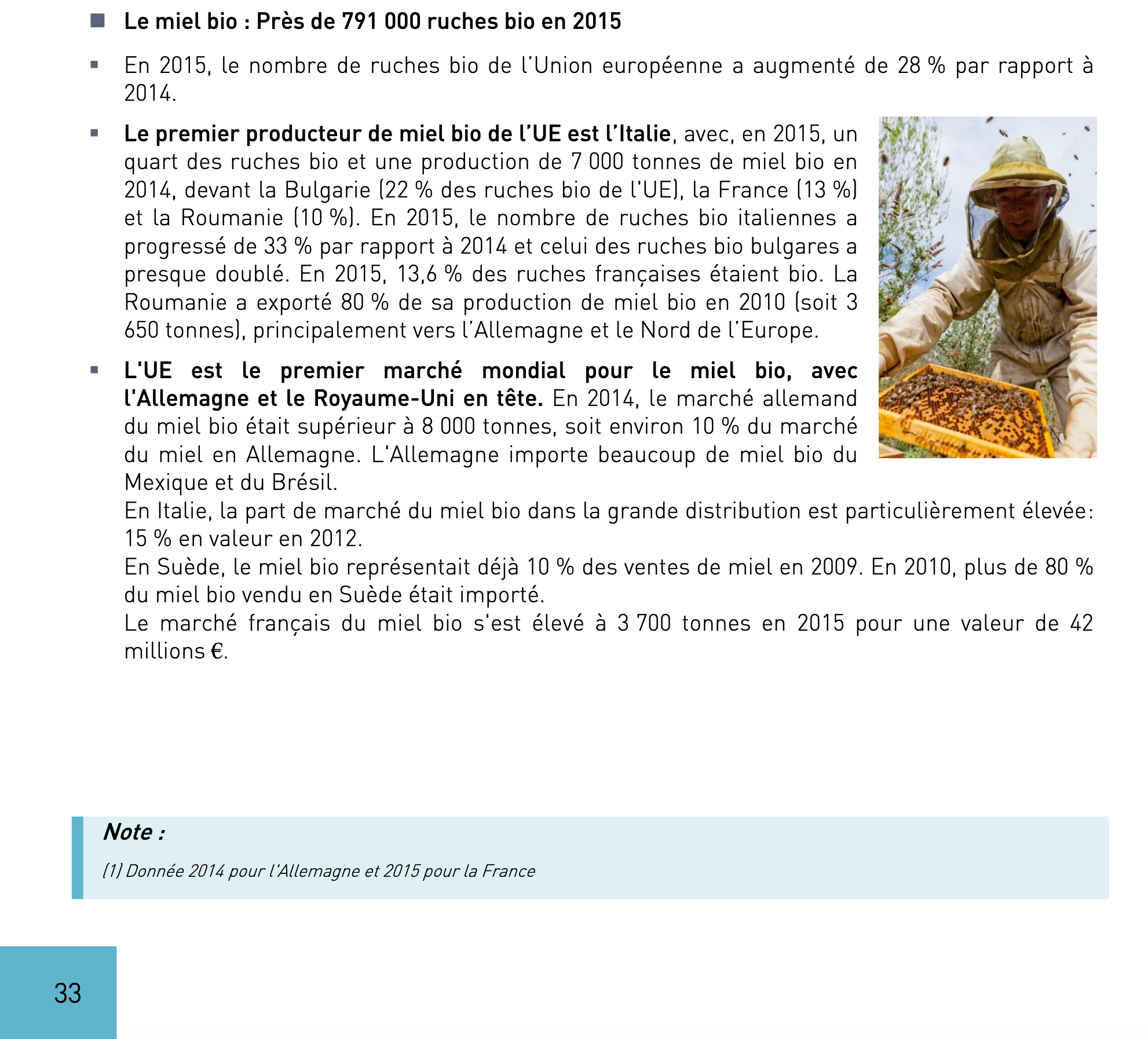 L'AGRICULTURE BIO DANS L'UNION EUROPEENNE: Apiculture et Miel BIO (Pages 106 et 107 édition 2021)