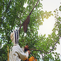 Récolte essaims d'abeille - Intervention à titre gratuit a moins de 15 km avec des moyens simples (pas de nacelle, hauteur max de 7 mètres …) : Oui